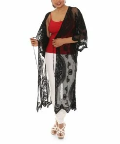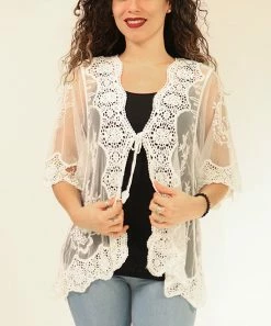 Buy π Shoreline Brown Foliage Embroidered Three-Quarter Sleeve Tie-Front Duster – π© Women π€©