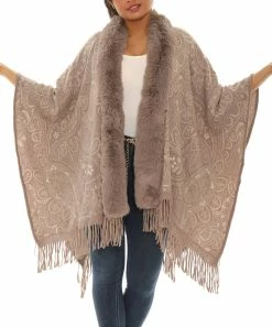 Top 10 βοΈ Shoreline White & Gray Zigzag Faux Fur-Trim Cowl Neck Poncho – π© Women & Plus β¨