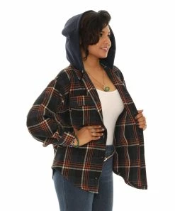 Buy π₯° Shoreline Navy & Rust Plaid Detachable-Hood Long-Sleeve Shacket – π© Women & Plus π