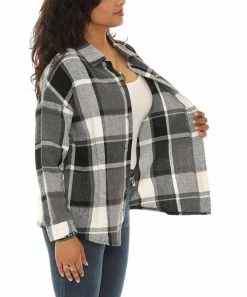 Cheapest π€© Shoreline Gray & White Plaid Button-Front Long-Sleeve Shacket – π© Women & Plus π―