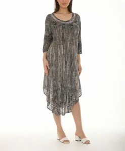 Brand new π Shoreline Gray Abstract Embroidered Three-Quarter Sleeve π Dress – Plus π