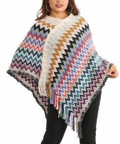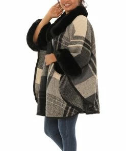 Wholesale β¨ Shoreline Ivory & Gray Checkerboard Fringe-Accent Poncho – π© Women & Plus βοΈ