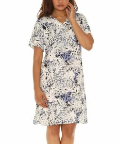 Budget β¨ Shoreline Blue & White Leaf V-Neck Short-Sleeve Shift π Dress – π© Women & Plus π