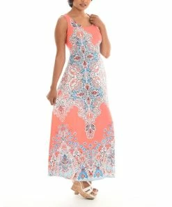 Budget π Shoreline Peach & Blue Paisley Sleeveless Maxi π Dress – π© Women & Plus π§¨