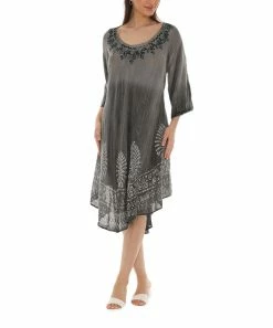 Promo βοΈ Shoreline Gray Embroidered Tie-Dye Three-Quarter Sleeve Shift π Dress – Plus π