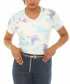 Best Sale π Shoreline Cream & Purple Tie-Dye Short-Sleeve V-Neck Top – π© Women & Plus π