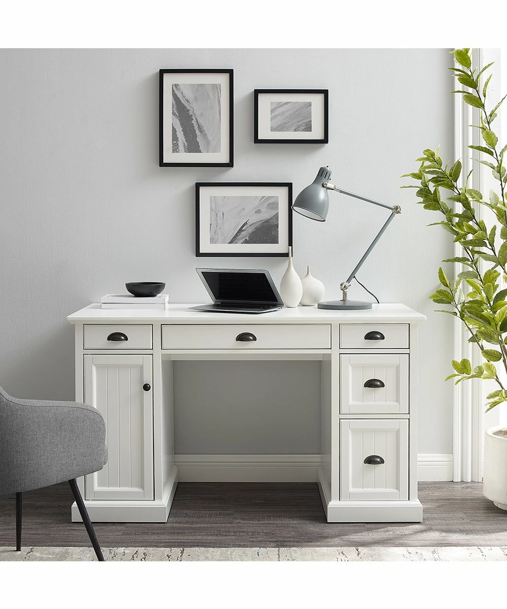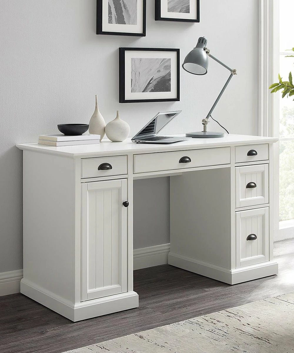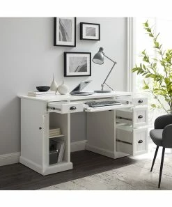 A stylish desk with sleek design, versatile storage drawers, adjustable leg levers and a pre-cut hole for cable management.
