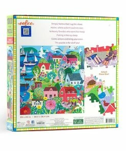 Complete the colorful shoreline village design of this puzzle for a challenging and relaxing hobby.