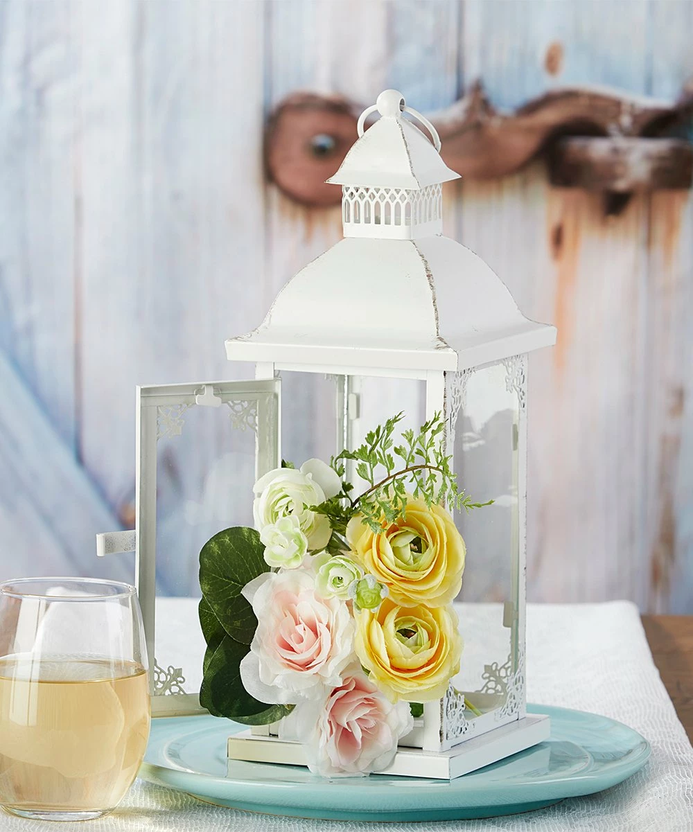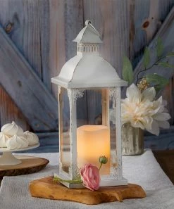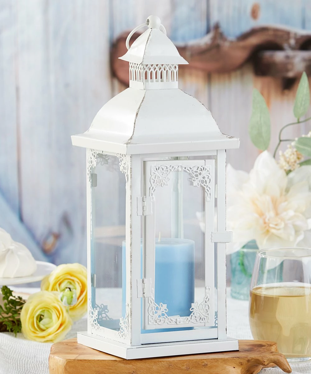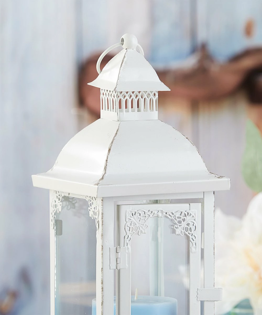 Whether your special day leads you and your loved ones to the shoreline or a rolling country side, rely on this antiqued, decorative lantern to support your vintage-tinged theme.