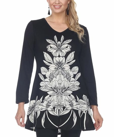 Spruce up your casual collection with this lightweight tunic featuring an eye-catching design and a hint of stretch.