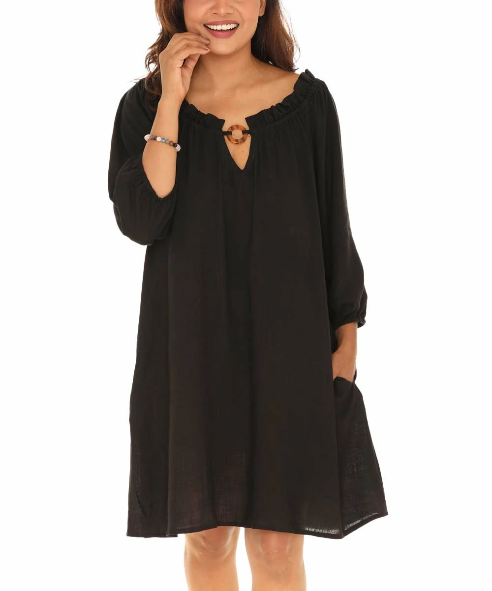 Exude classic charm with a boho twist with this peasant dress featuring a darling keyhole detail and built-in pockets perfect for stowing your everyday essentials.