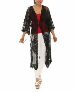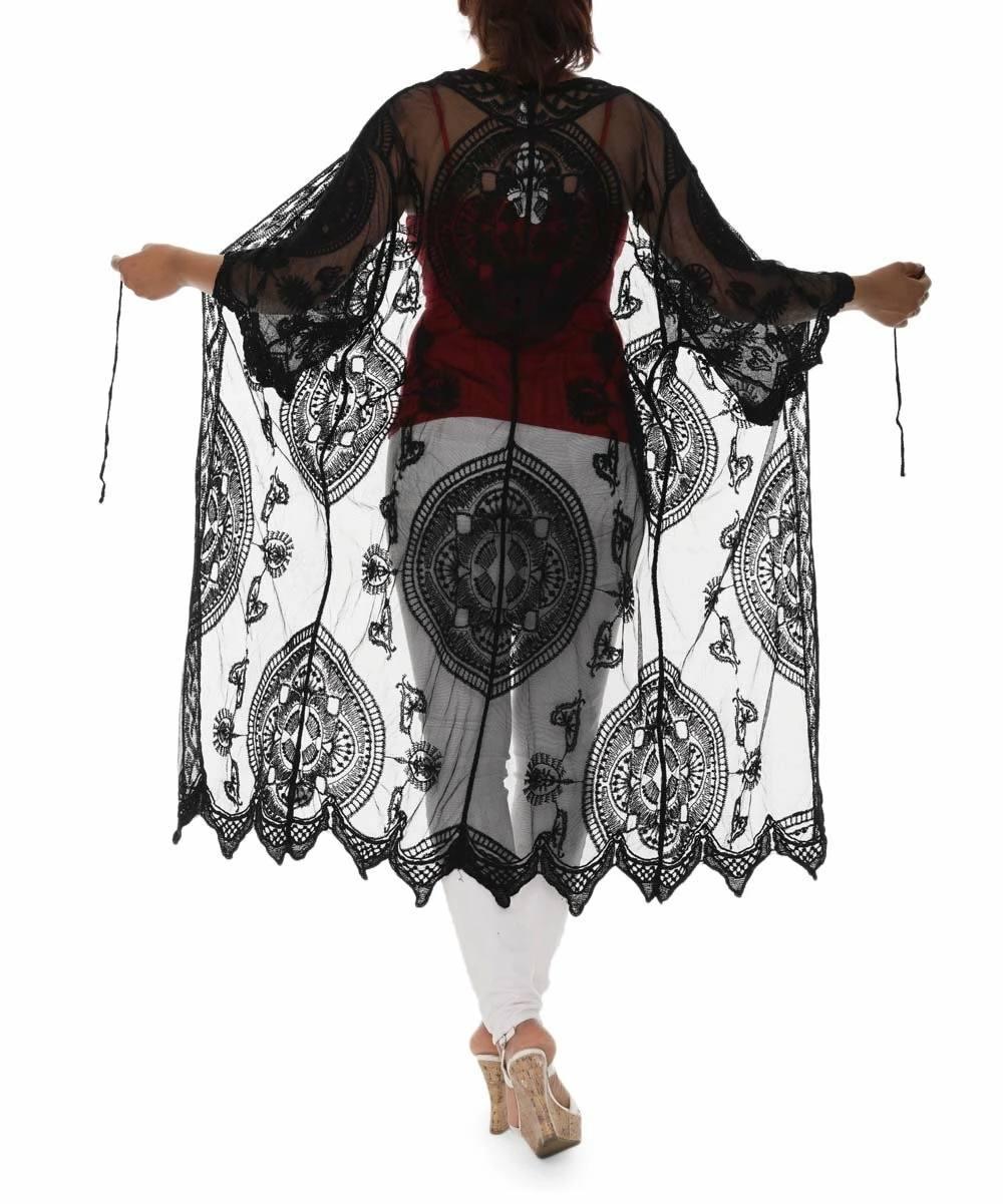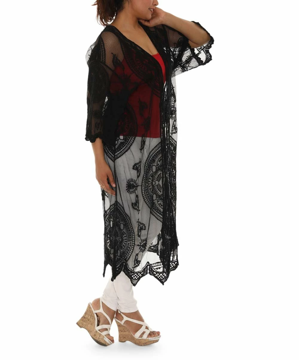 Top off your outfit with a touch of boho charm with this open duster made from gorgeous lace material in a longline design.
