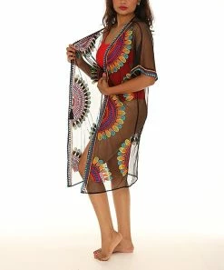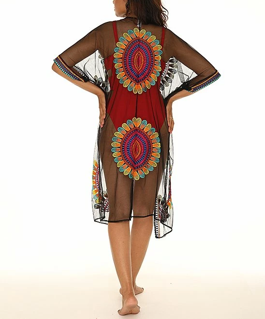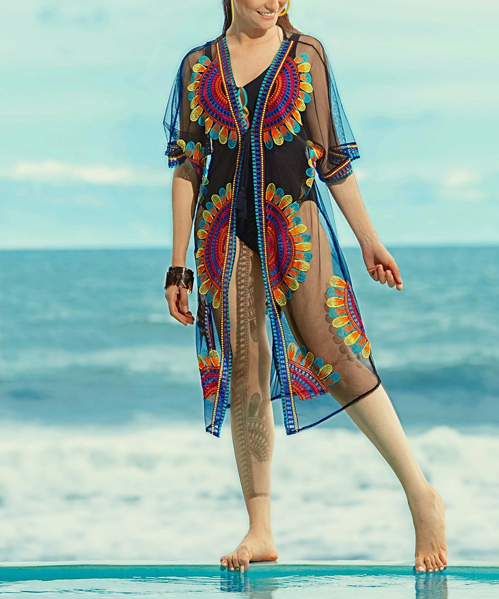 Stay covered when you’re lounging poolside with this cover-up boasting lightweight fabric and colorful embroidered details.