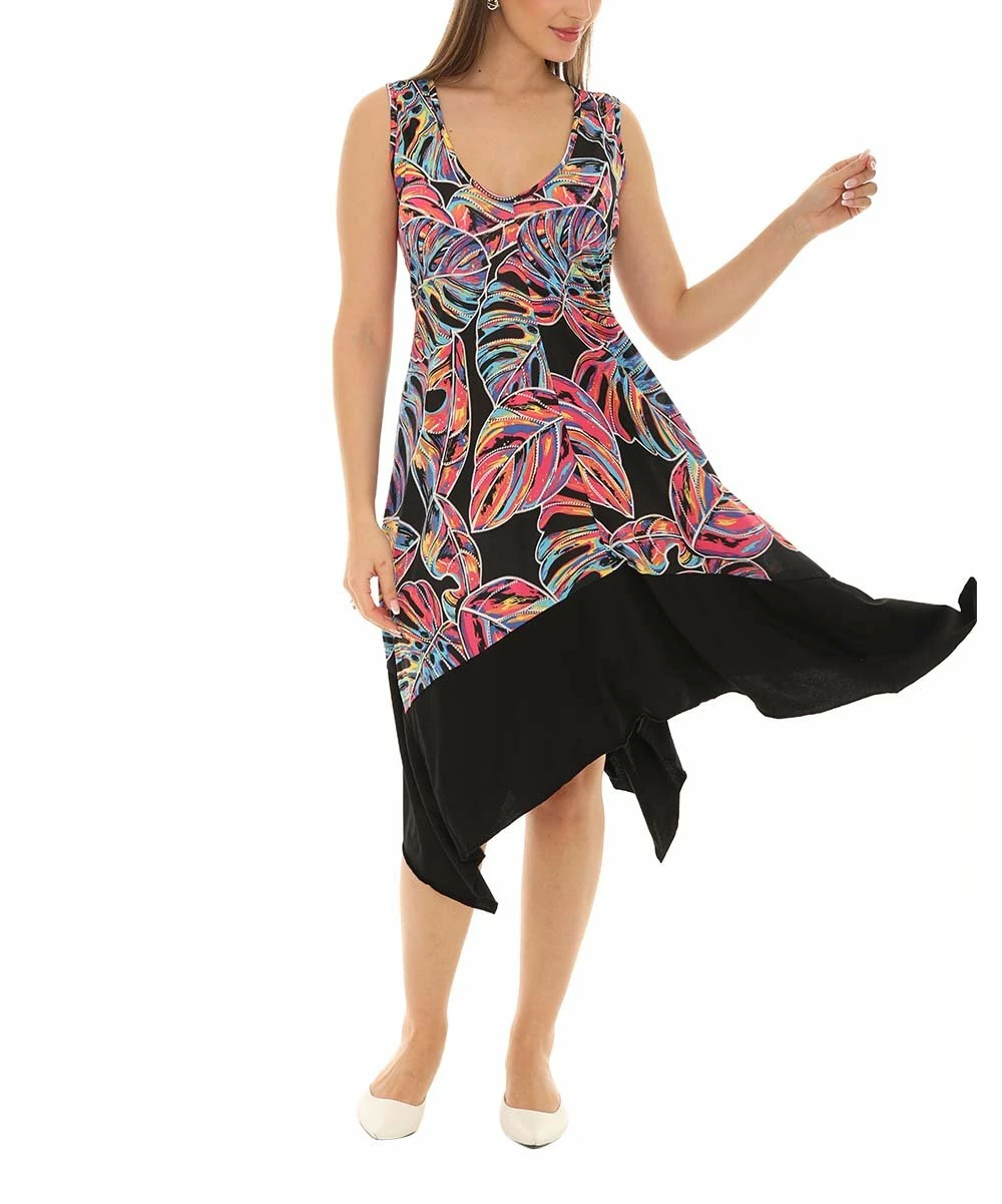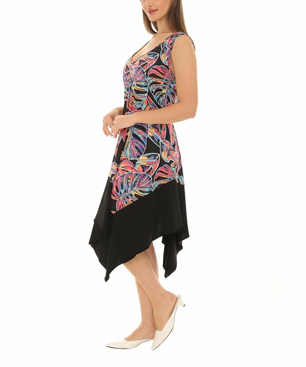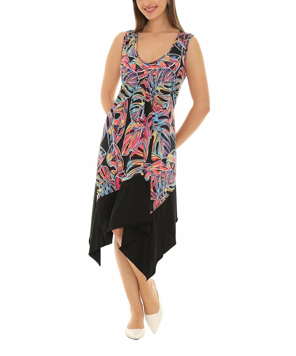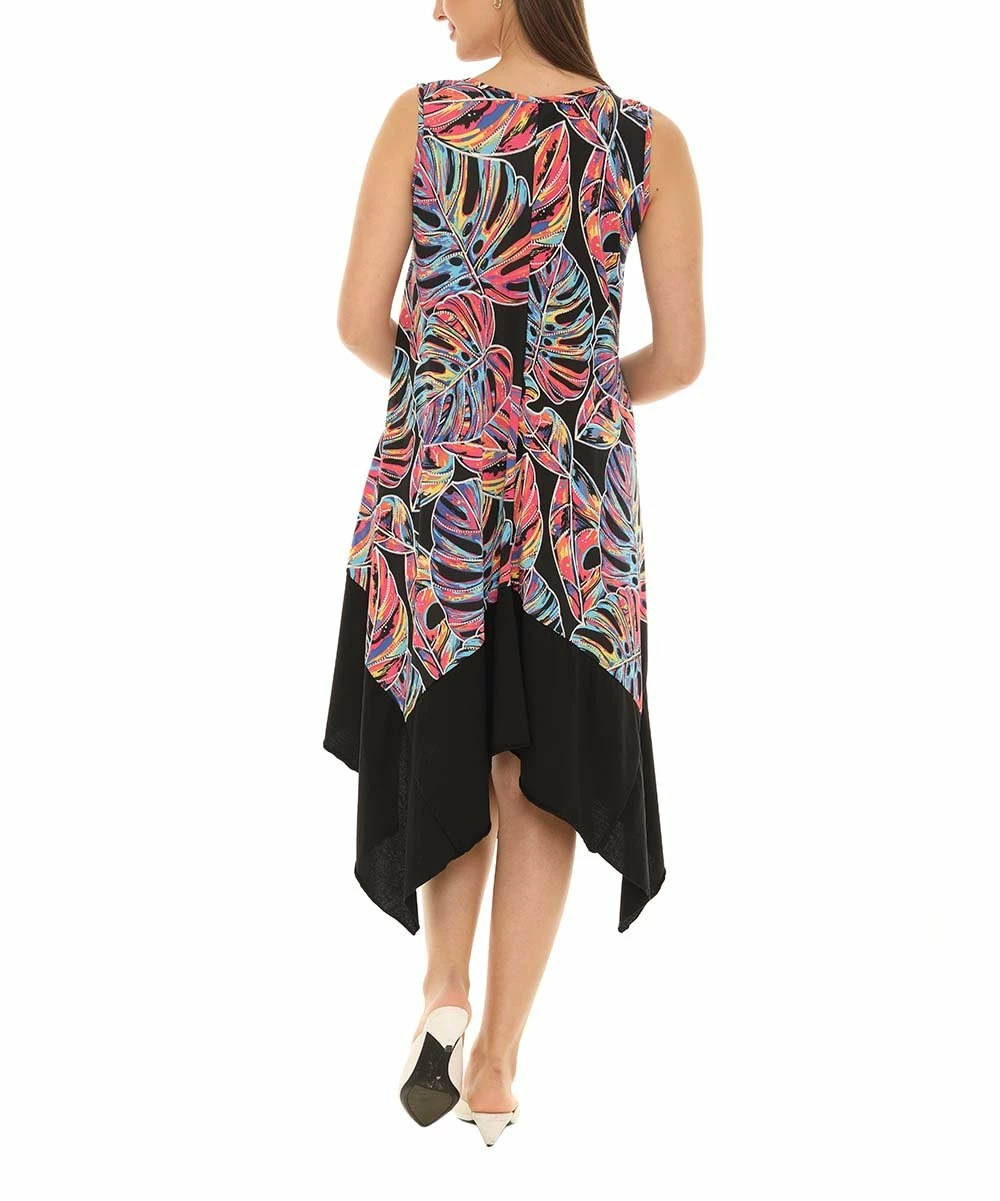 Lightweight and flowy, this color block dress features a flattering scoop neck and bohemian-inspired handkerchief hem.
