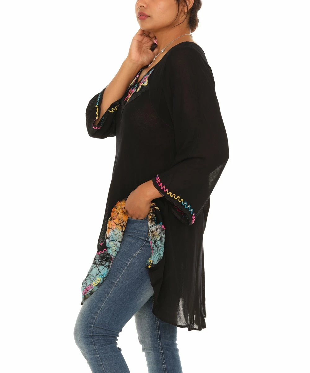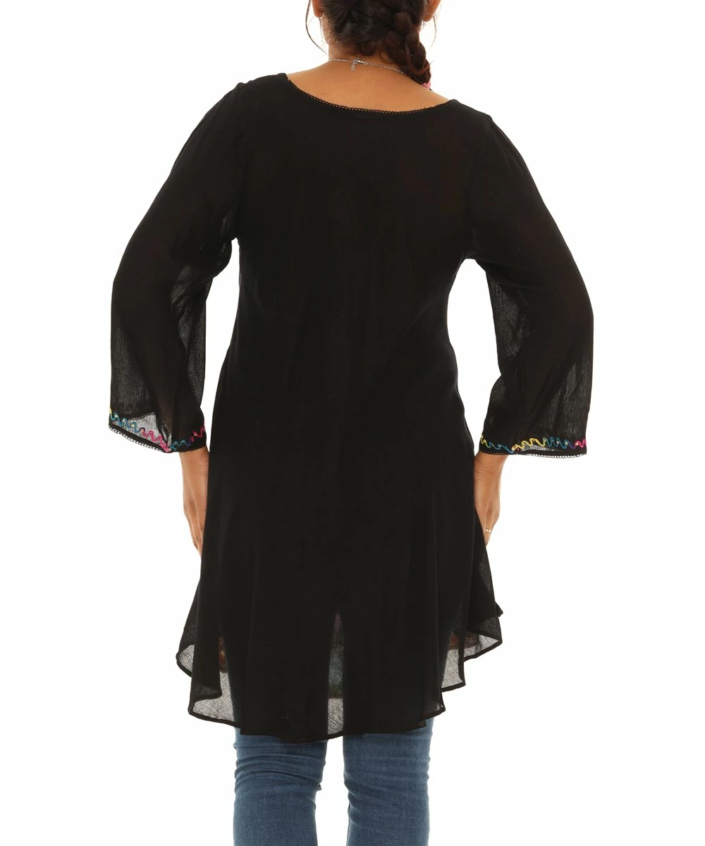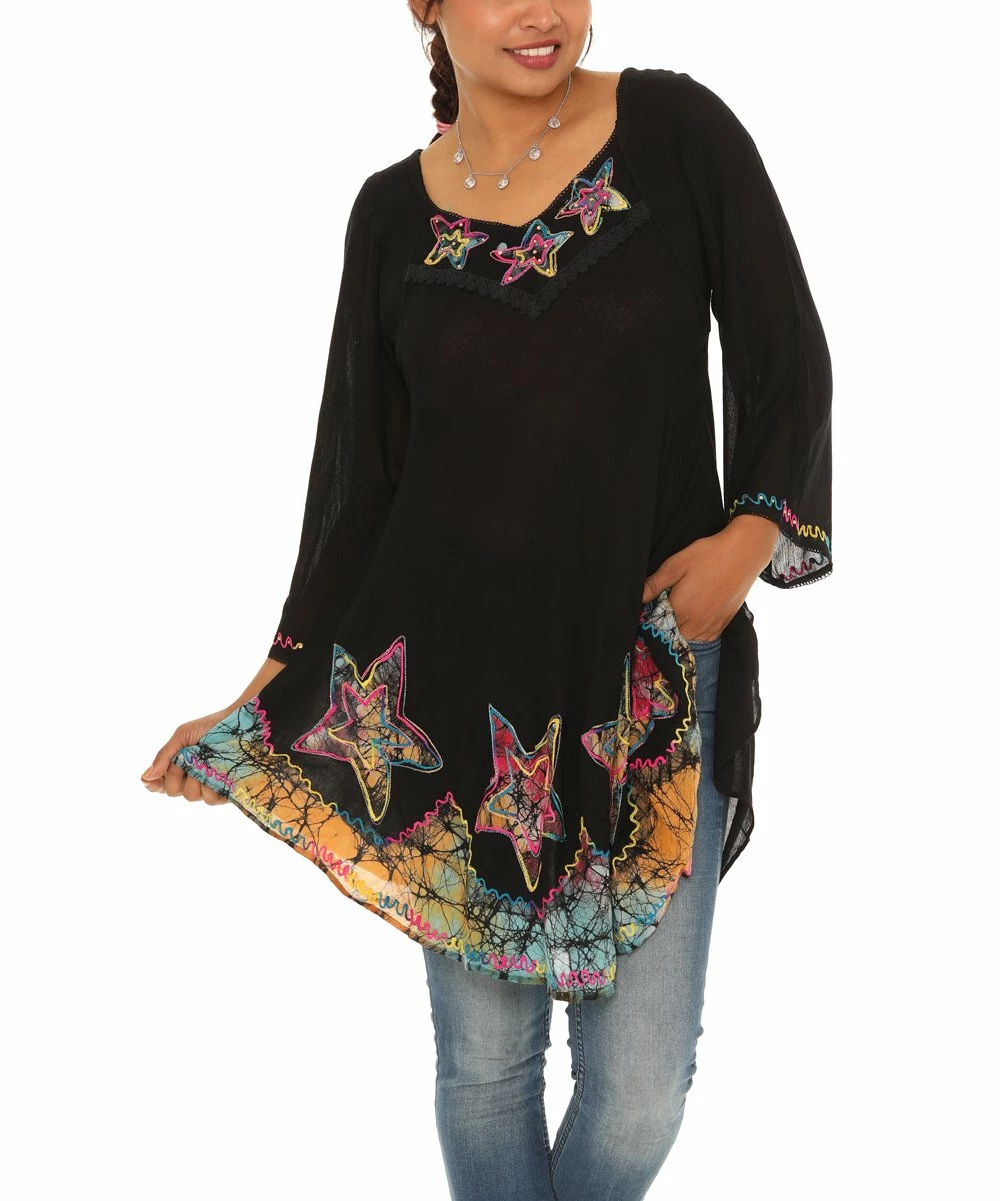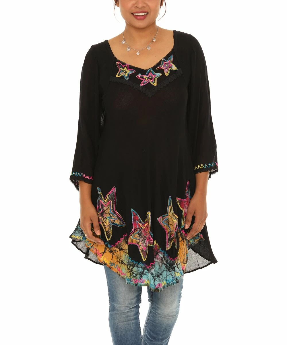 Outlet πŸŽ‰ Shoreline Black & Red Star Three-Quarter Sleeve Lace-Hem Tunic – πŸ‘© Women πŸ‘