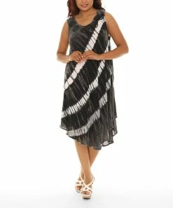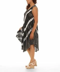 Breeze through your day in this airy sleeveless dress featuring a playful triangle hem and stripe tie-dye print.