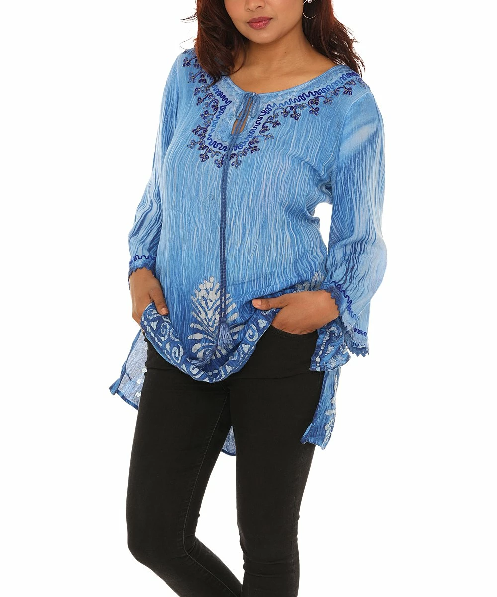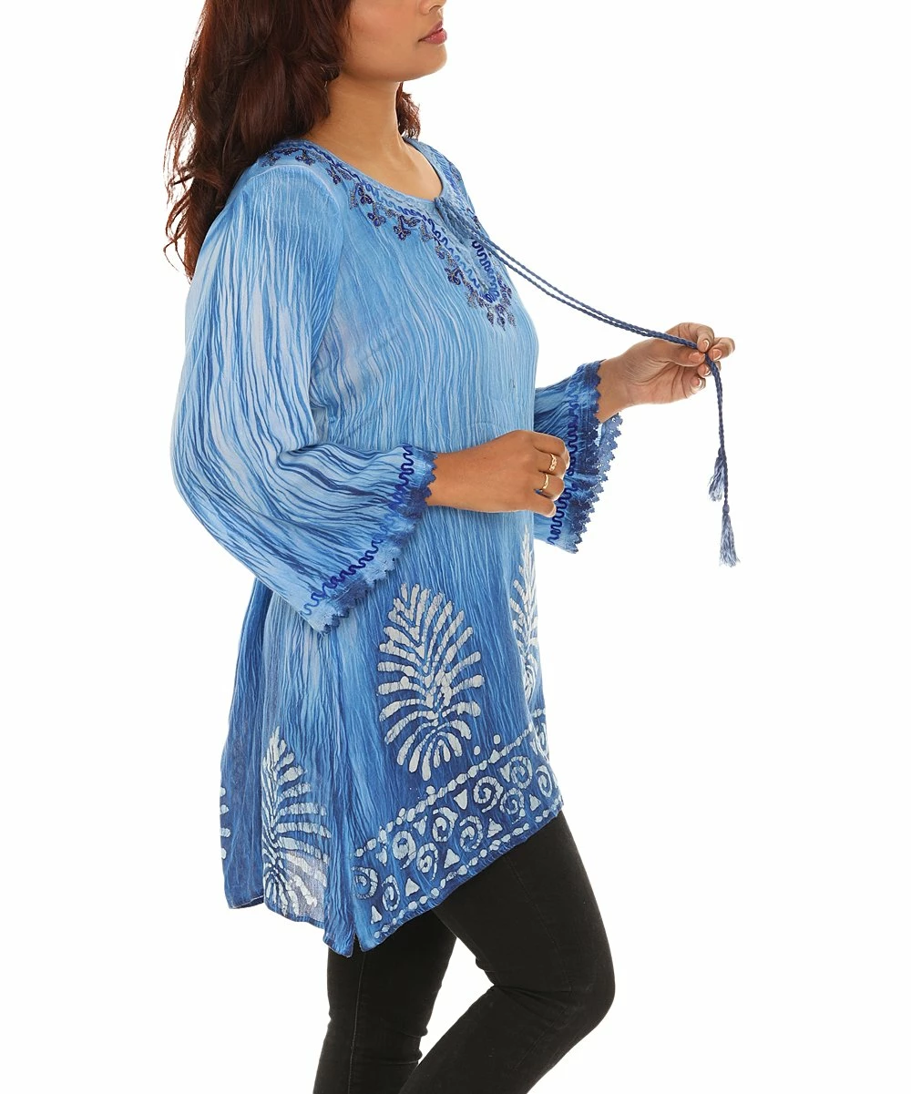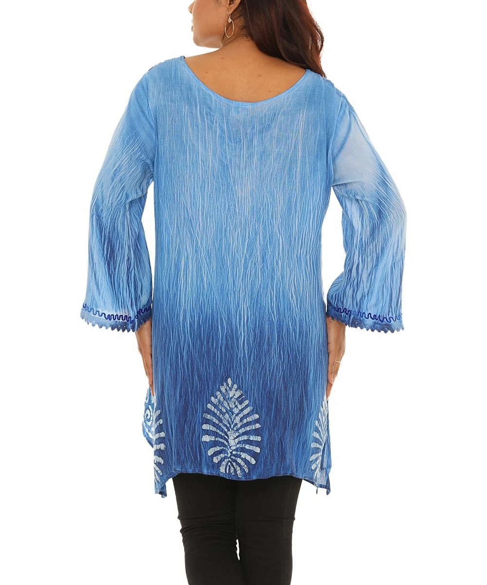 Brand new βœ”οΈ Shoreline Blue Batik Three-Quarter Sleeve Notch Neck Tunic – πŸ‘© Women & Plus πŸ””