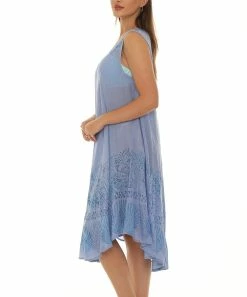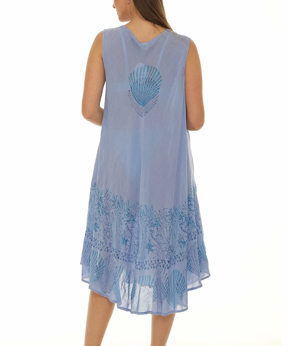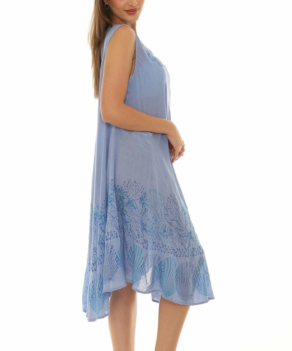 Flowy sleeveless dress with a beach-inspired design and lightweight fabric.
