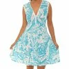 This shift dress features an allover floral print and sleeveless cut. The wide collared neckline has an adjustable zip closure.