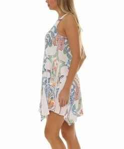 Infuse your sunny-day wardrobe with a touch of timeless elegance with this sleeveless dress that boasts soft, stretch-infused fabric adorned with an intricate Fleur De Lis pattern.