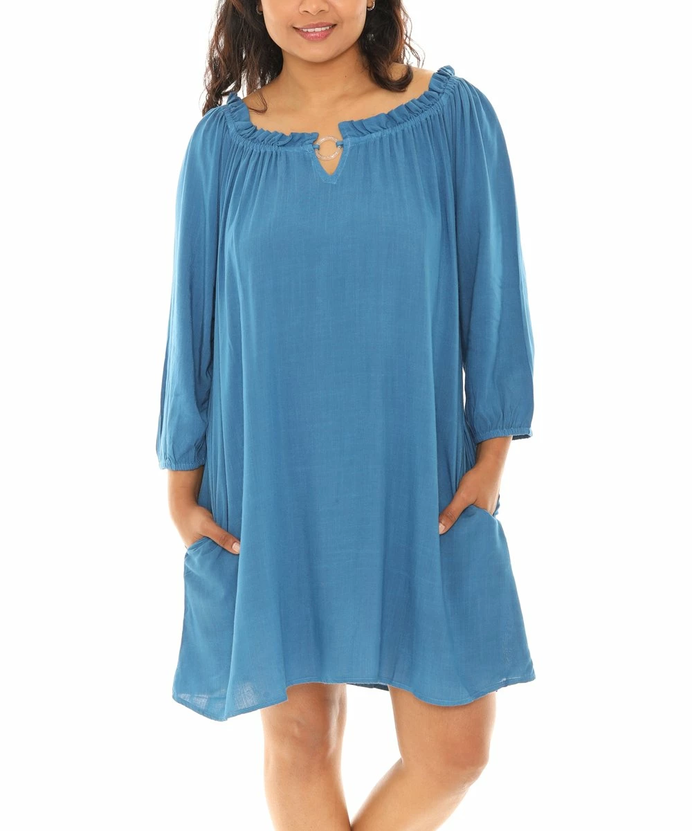 A shift dress outfitted with billowy sleeves, dual pockets and a smocked neck for versatile wear.