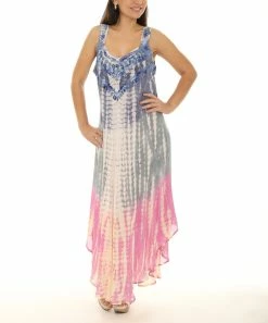 A dynamic option for travel or weekend gatherings, this sleeveless dress flaunts a trend-right maxi style and a statement-making print.