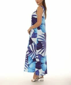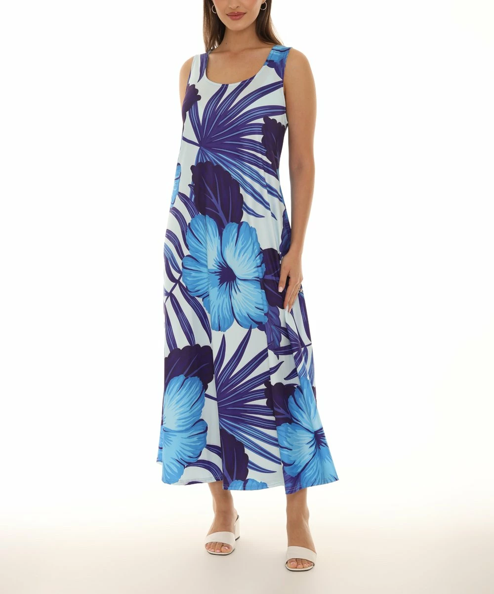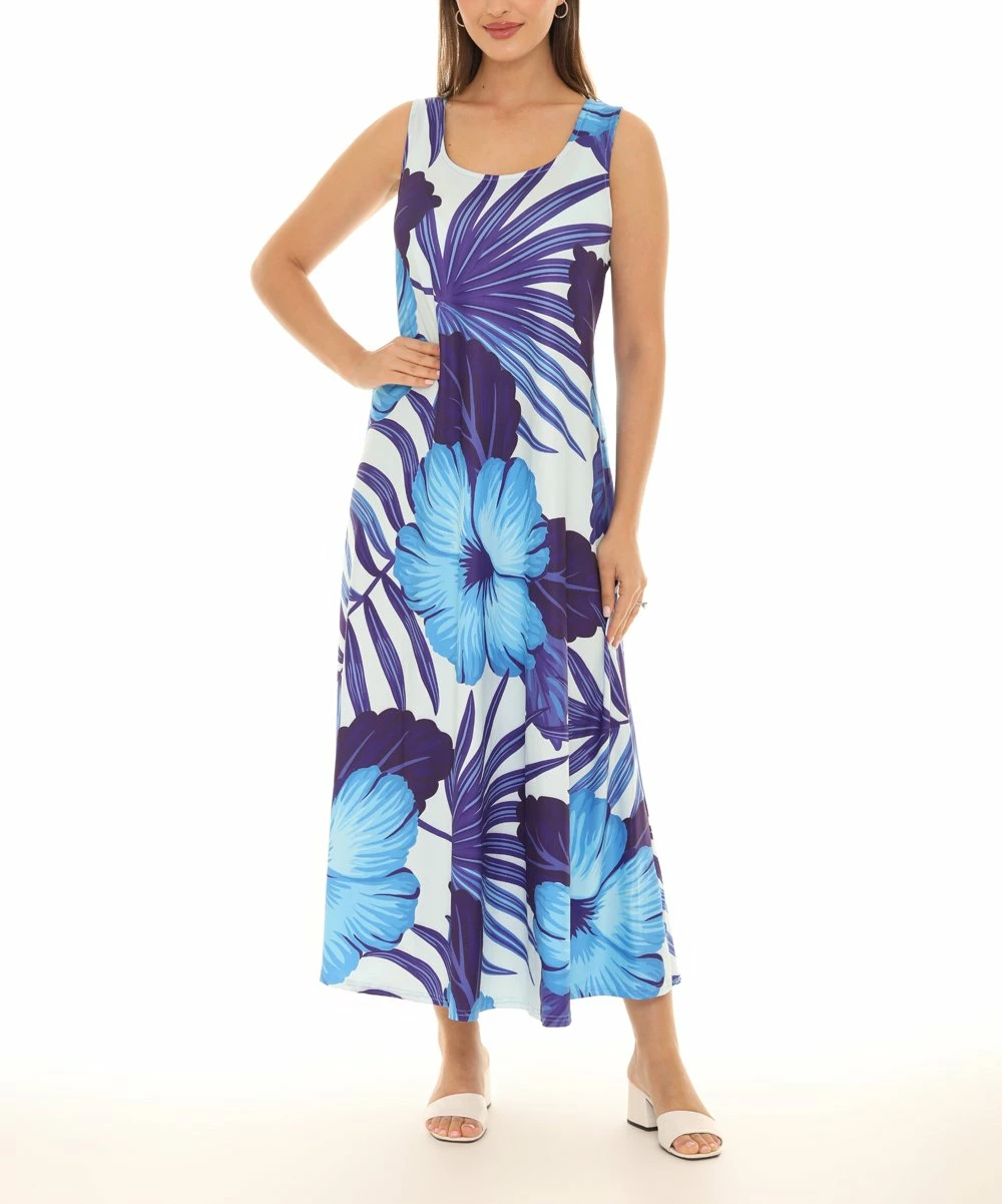 Bring a tropical touch to your warm-weather wardrobe with this colorful maxi dress flaunting stretch-enhanced fabric and a flowy fit.