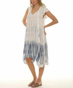 Breezy caps-sleeve dress featuring a v-neckline, sidetail-hem and tie-dye pattern.
