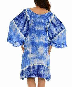 Breeze through your days in this soft, flowing shift dress featuring billowing wide sleeves and a plunging neckline.