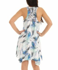 Starring an allover colorful feather print and subtle embellished details, this relaxed sleeveless dress makes for an easygoing option to take on the day.