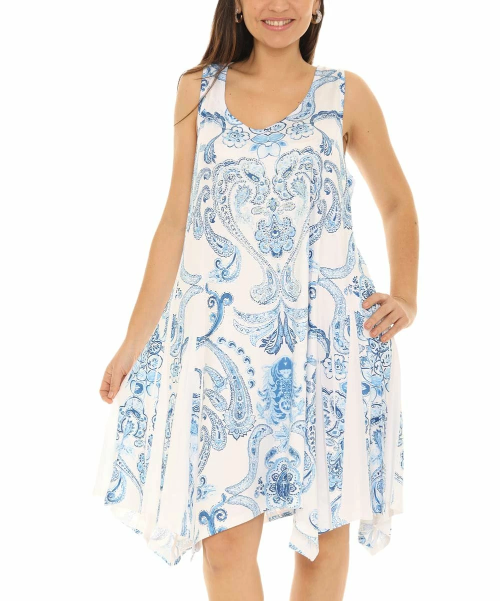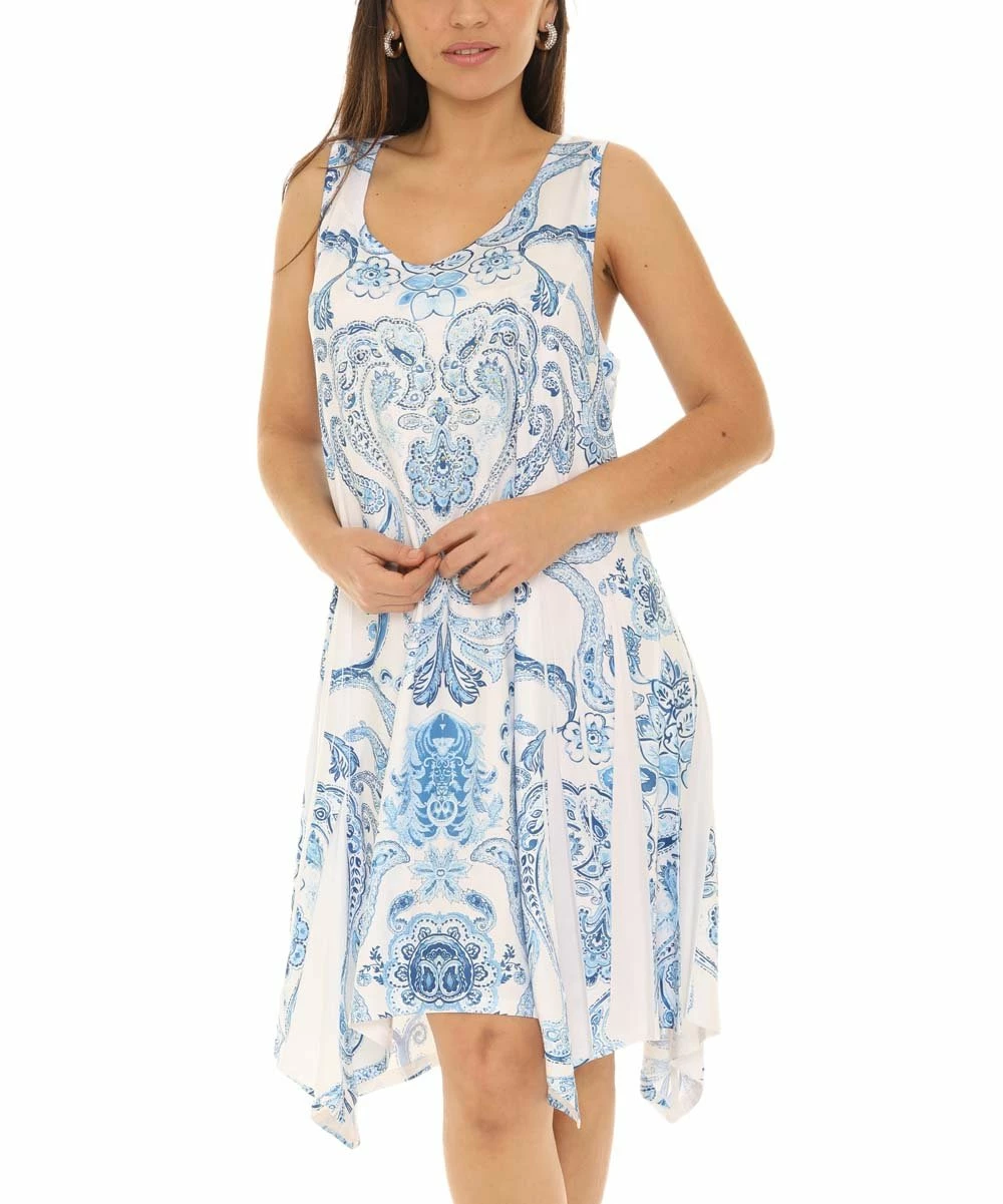 Infuse your sunny-day wardrobe with a touch of timeless elegance with this sleeveless dress that boasts soft, stretch-infused fabric adorned with an intricate Fleur De Li pattern.