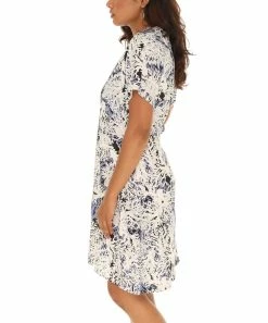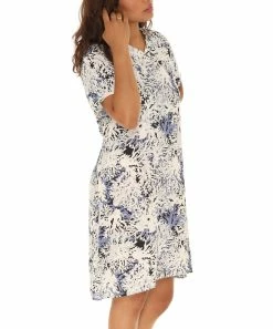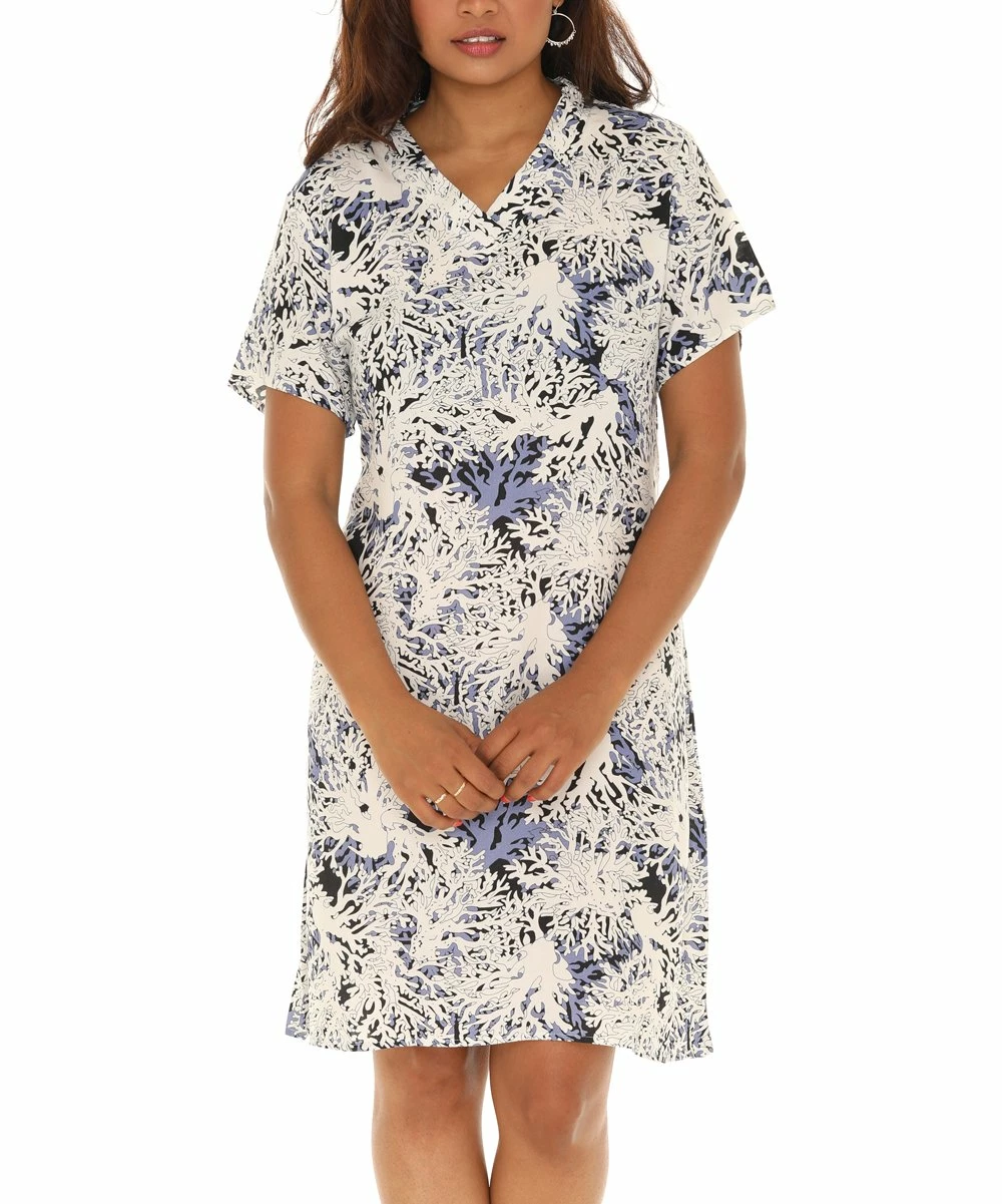 Budget ✨ Shoreline Blue & White Leaf V-Neck Short-Sleeve Shift πŸ‘— Dress – πŸ‘© Women & Plus πŸ˜‰