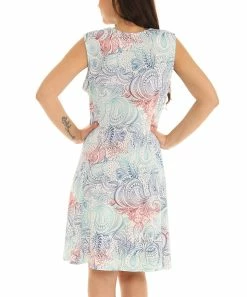 Comfort meets style in this stretch-friendly sleeveless dress fitted with a zip-front detail and a cheerful paisley print that add fashionable flair to any look.