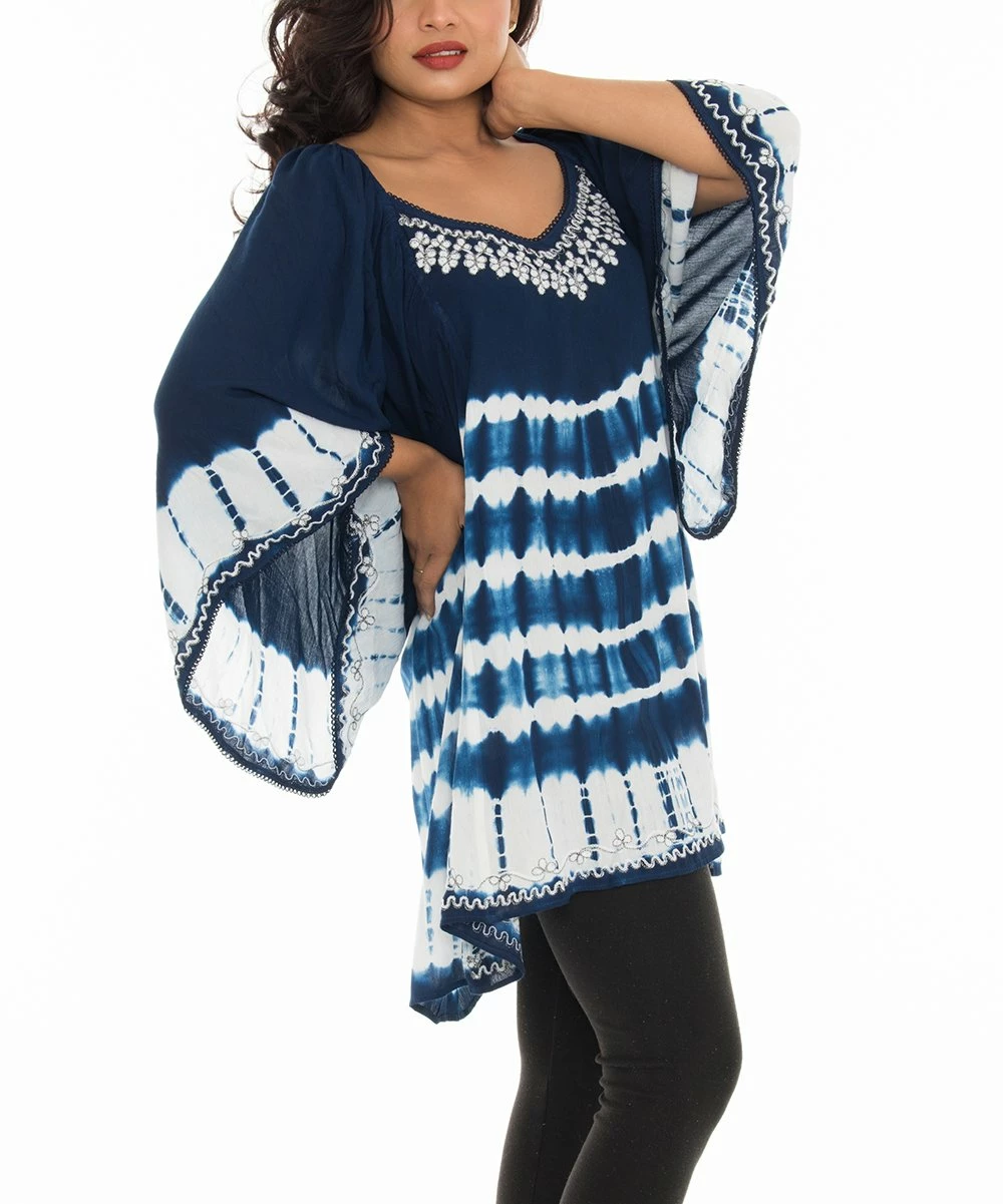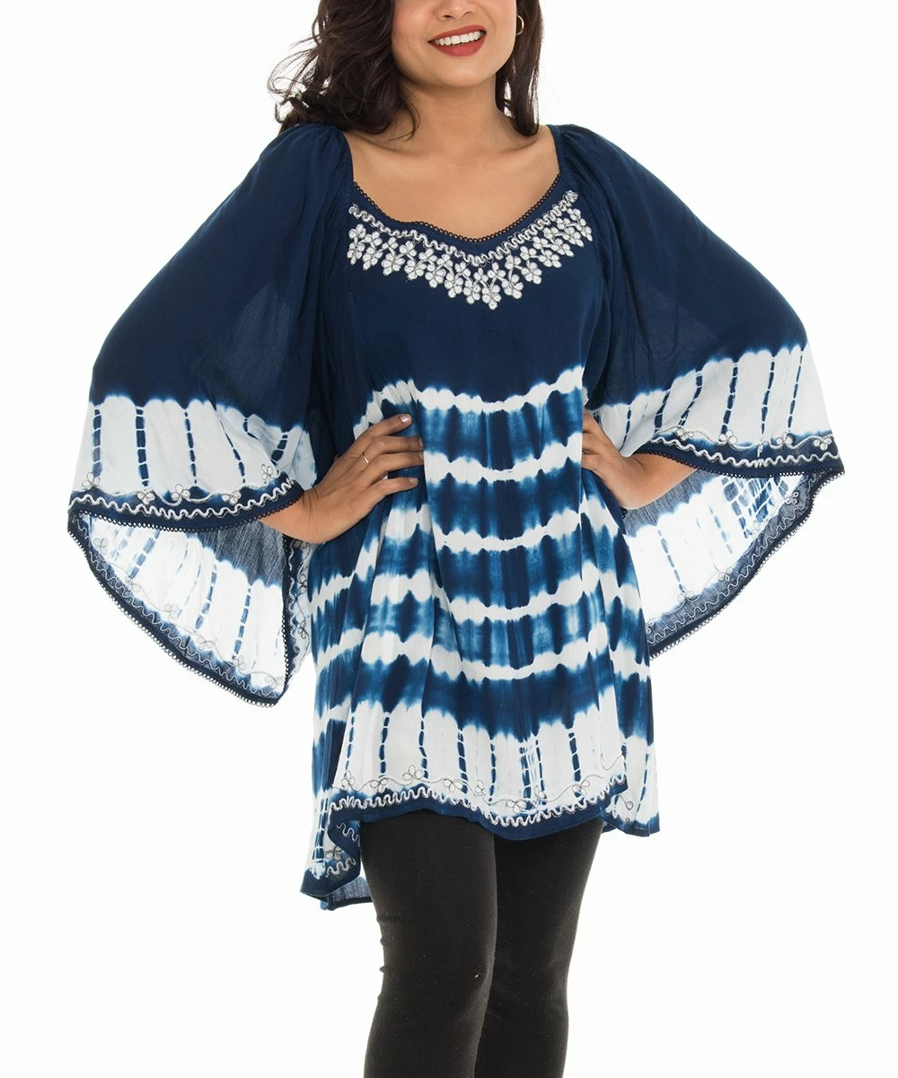 Dramatically swaying sleeves and a blended tie-dye motif combine on this lightweight top for a boho-fresh finish to your staple jeans and leggings.