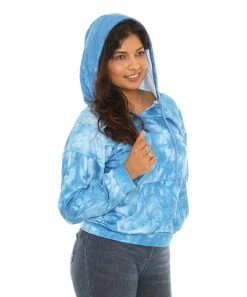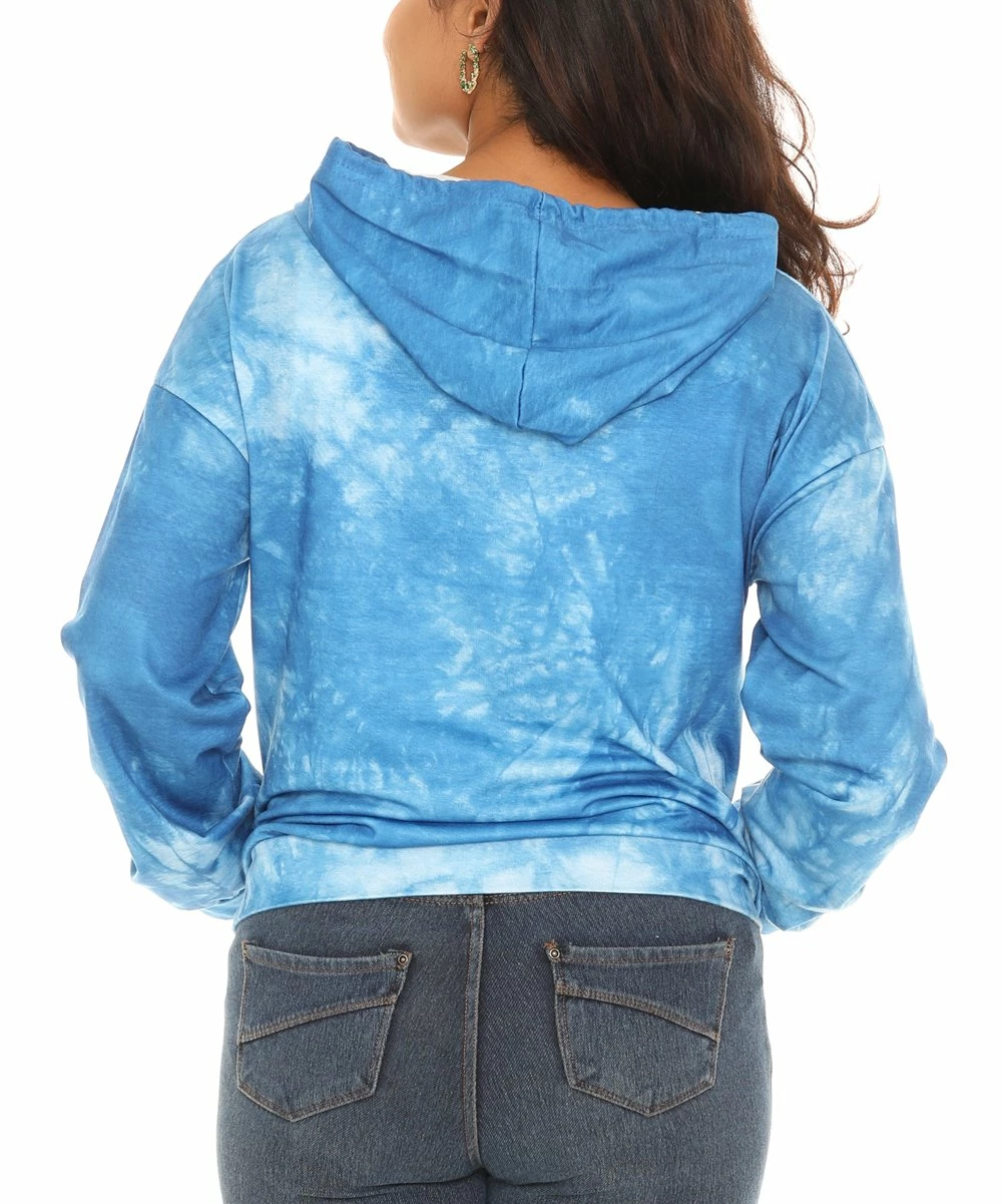 This stretch-friendly tie-dye hoodie has a convenient kangaroo pocket to keep your hands warm.