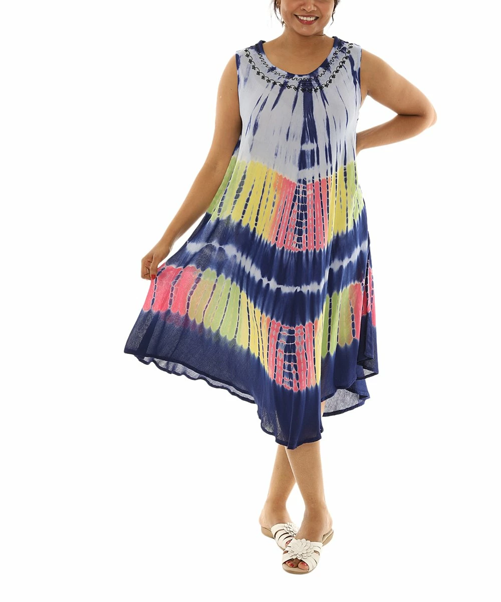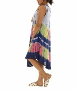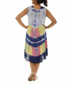 Wholesale 🧨 Shoreline Blue & Yellow Tie-Dye Scoop Neck Sleeveless πŸ‘— Dress – πŸ‘© Women & Plus 🀩