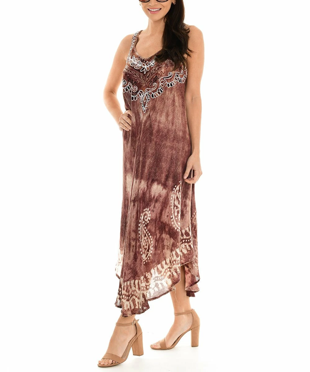 Channel beachy boho vibes in this sleeveless midi dress designed with embroidered details and silky-soft fabric for a coveted blend of comfort and style.