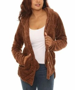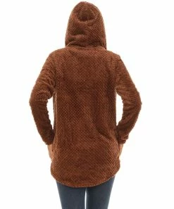 Keep cozy in this softly textured button-up hoodie with side pockets.