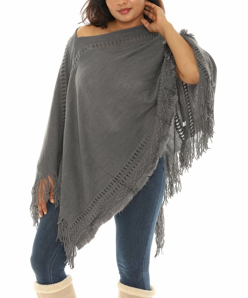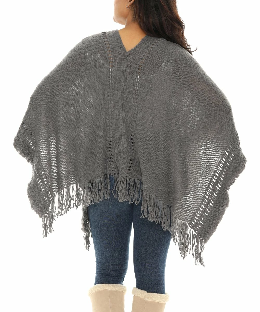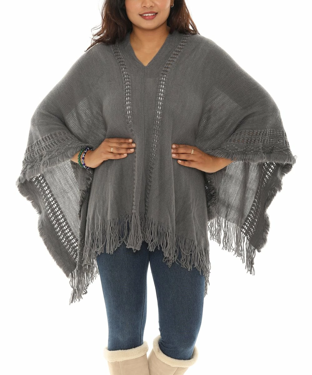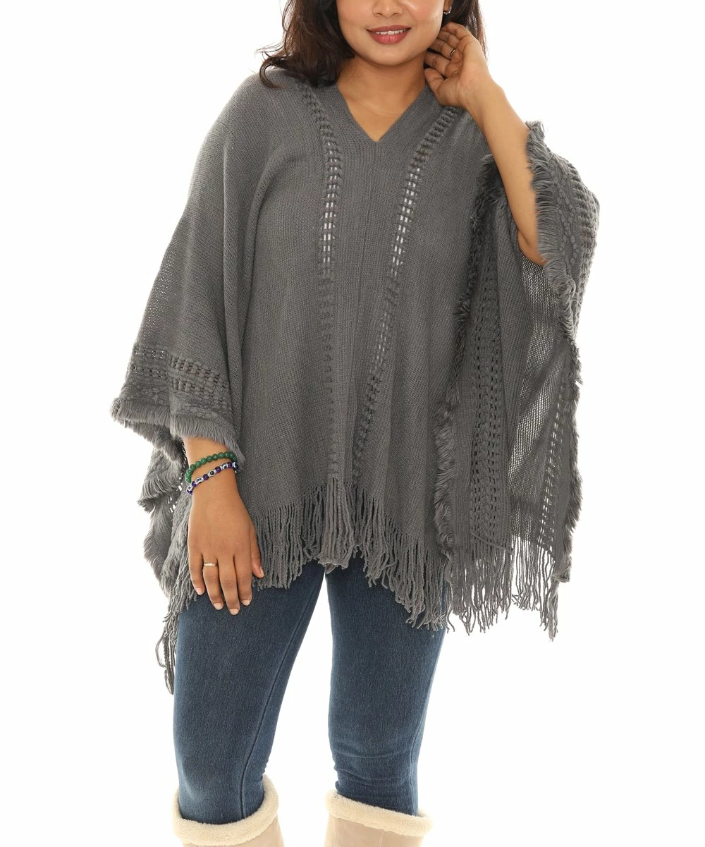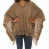 V-neck poncho featuring a fringe hem.