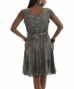 Sweeten your summery style in this dress featuring leaf patterns and a tie-detail for added charm.