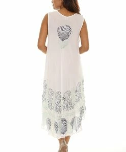 Flowy sleeveless dress with a beach-inspired design and lightweight fabric.