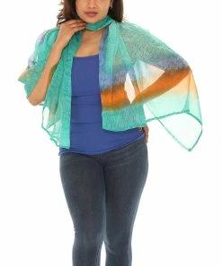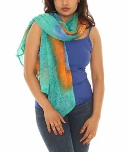 Elegant scarf crafted from lightweight fabric with an eye-catching colorful pattern.
