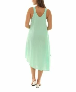 This dress features a scoop neckline, slender straps and a splash of bright color.