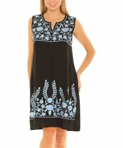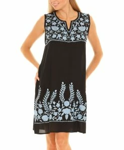 A dynamic option for travel or weekend gatherings, this embroidered dress flaunts a trend-right v-neckline and soft fibers.