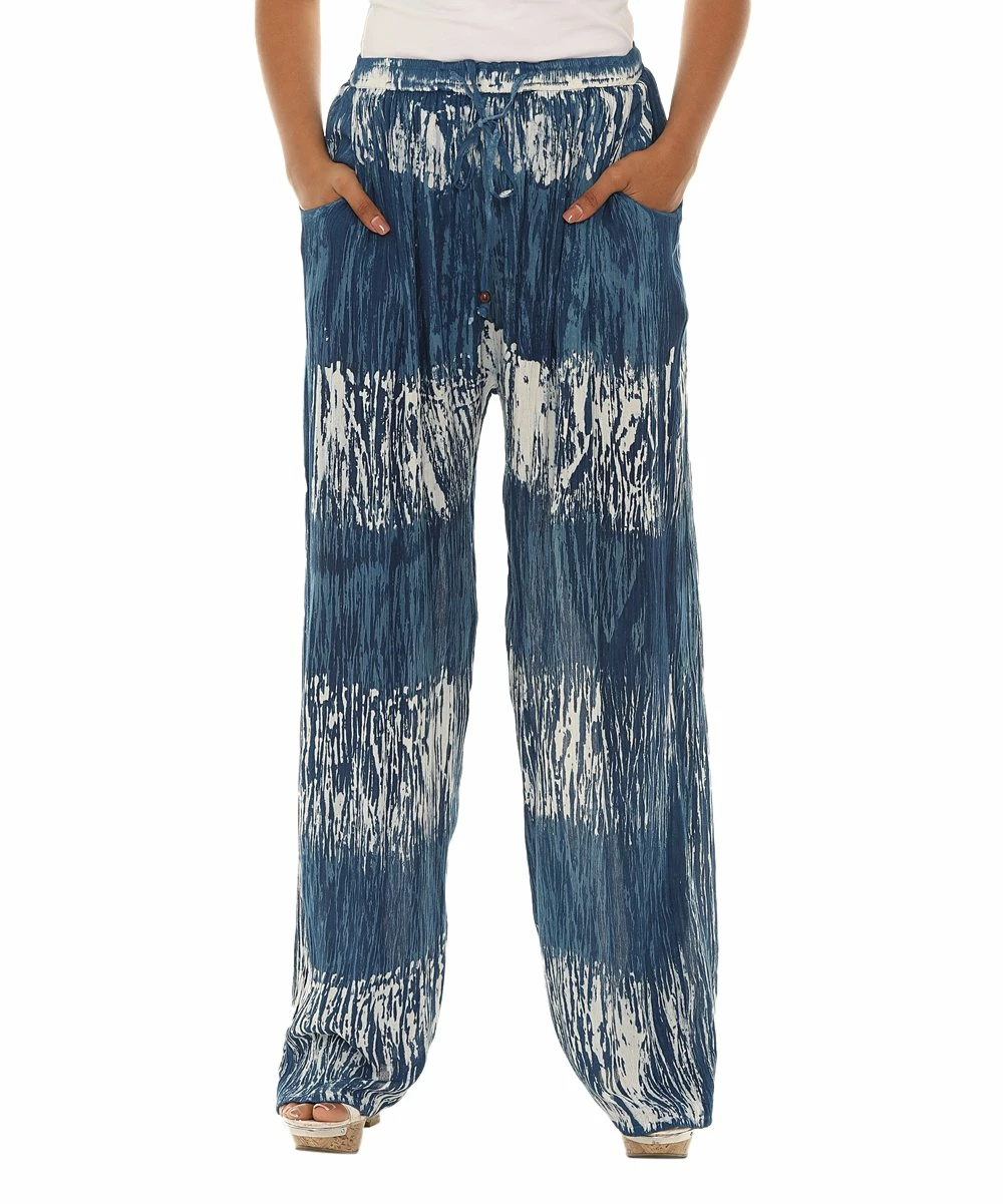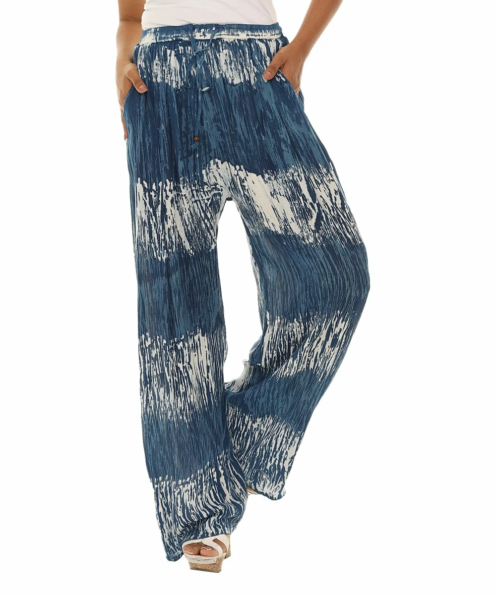 Go with the flow in these wide-leg pants featuring a bold tie-dye print, side pockets and a stretchy drawstring waist.