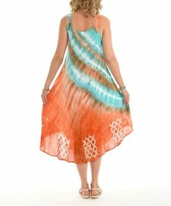 Welcome boho-chic appeal into your closet collection courtesy of this shift dress boasting a relaxed, sleeveless design and vibrant tie-dye print.