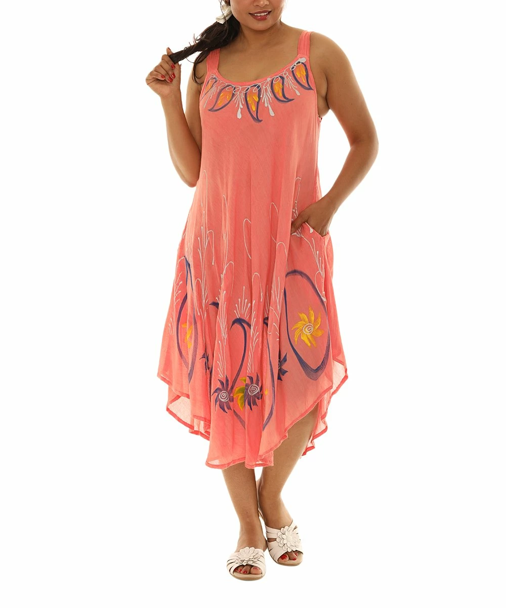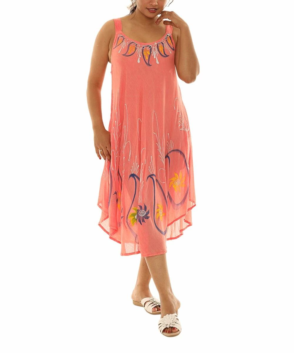 Budget πŸ˜‰ Shoreline Peach & Yellow Floral Scoop Neck Sleeveless πŸ‘— Dress – πŸ‘© Women & Plus 🧨