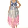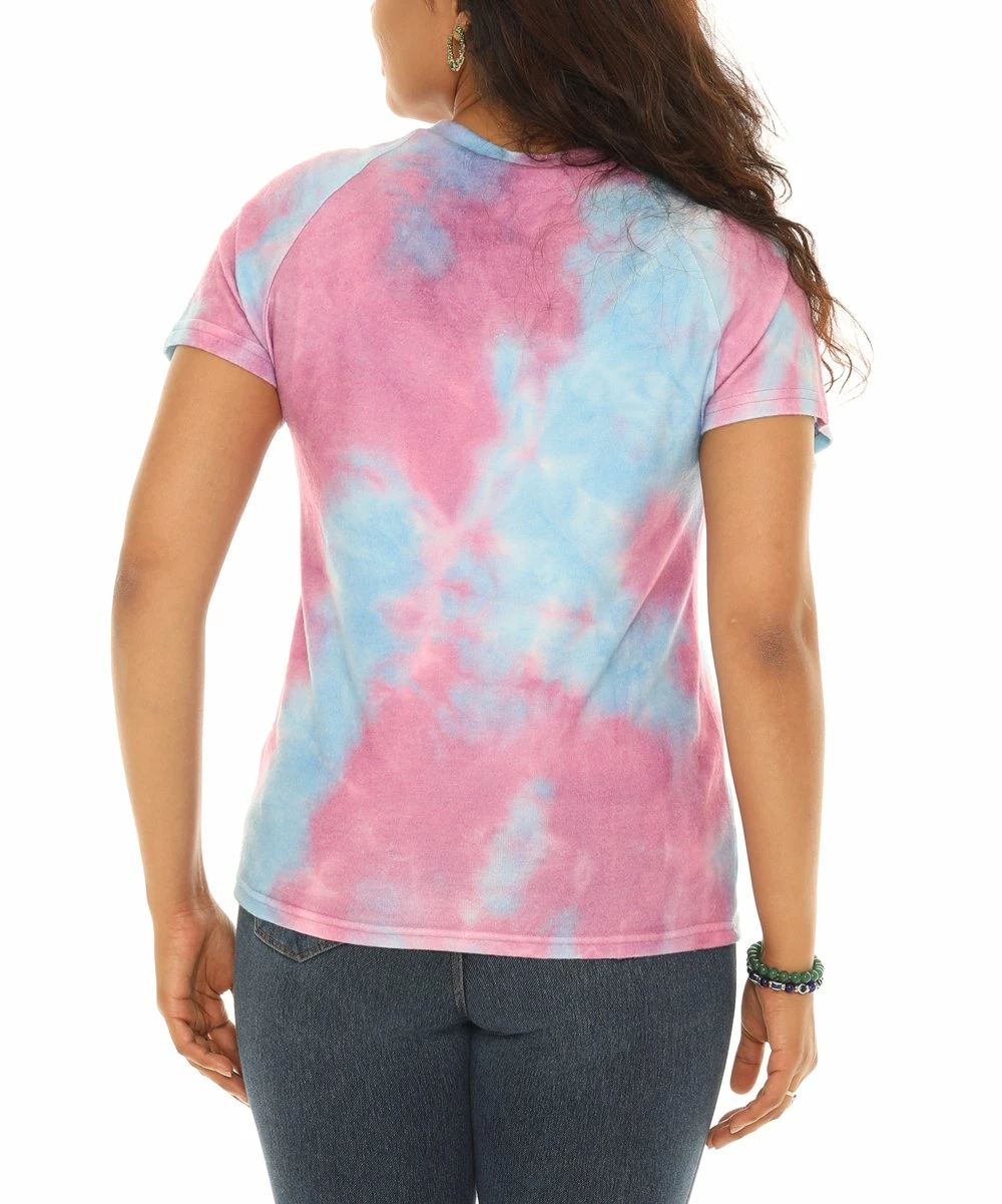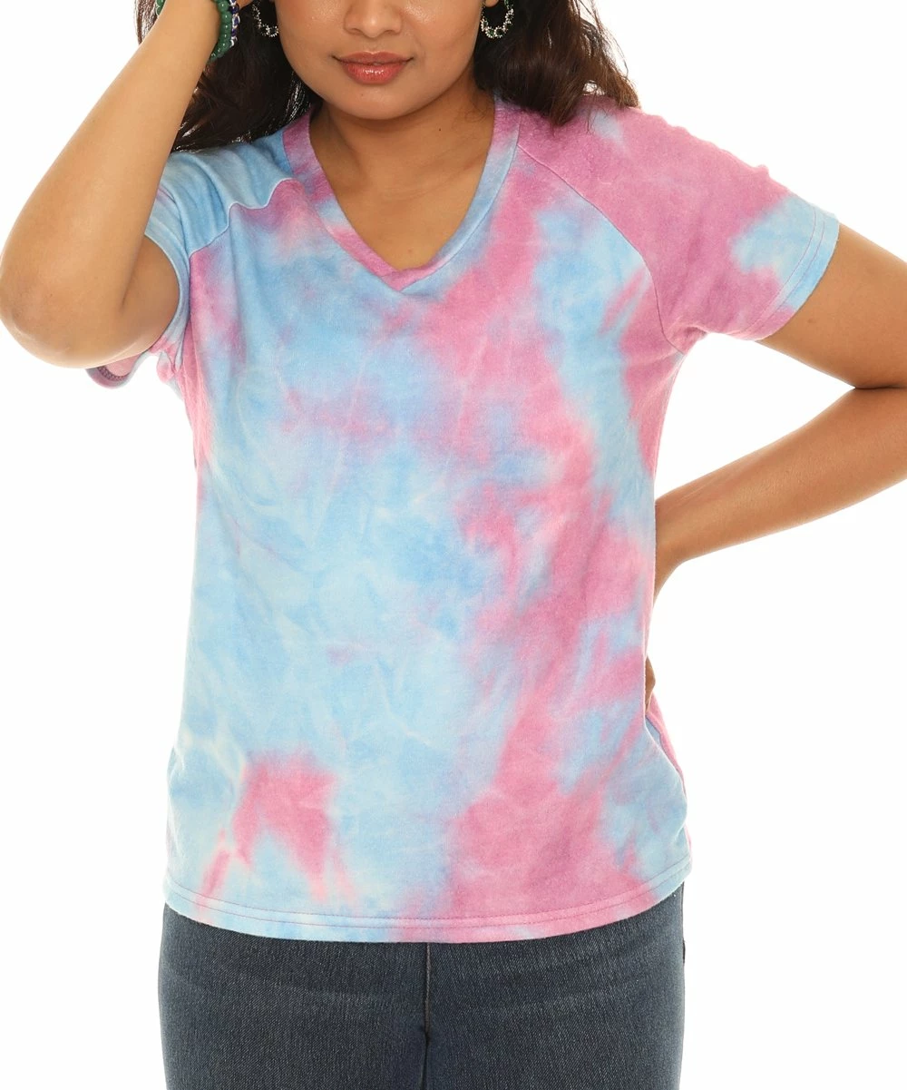Tri-blend fabric with flex adds comfort to this casual short-sleeve tee showcasing bright tie-dye and a v-neck.