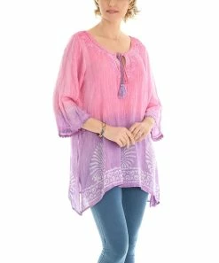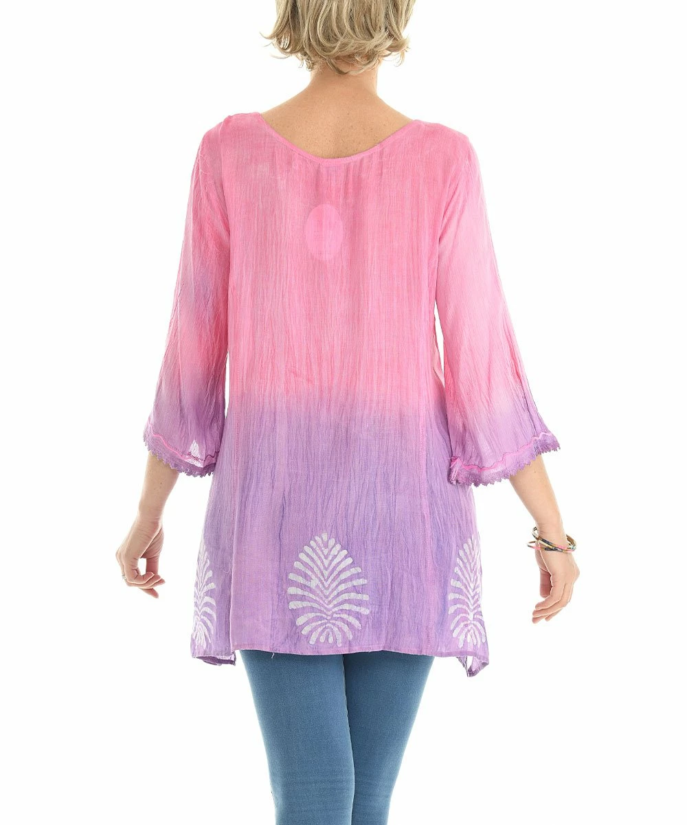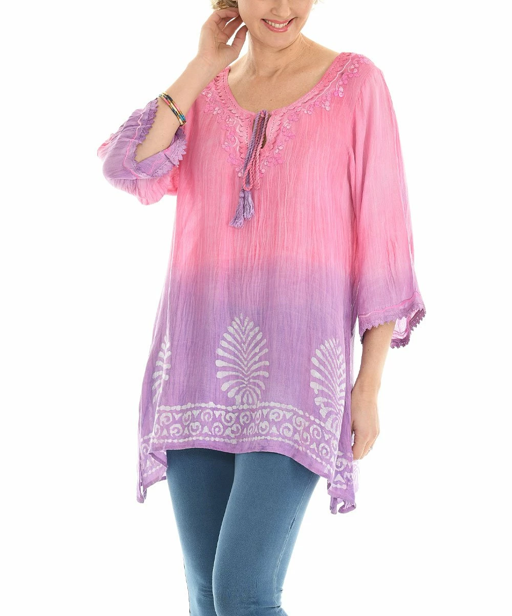 Stroll the coast or browse the bazaar in equal parts comfort and style with this breezy beatnik tunic, embellished with tassel ties and bright ombrΓ©d hues.