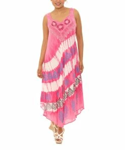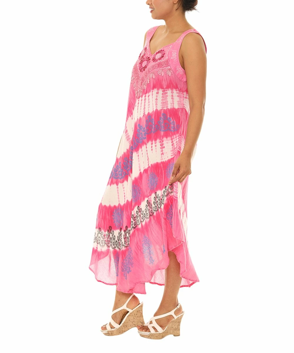 A dynamic option for travel or weekend gatherings, this sleeveless dress flaunts a trend-right maxi style and a statement-making print.